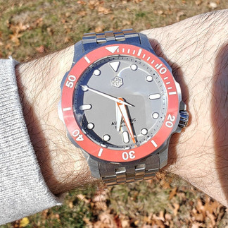 Hi all - just getting started on my watch review journey so I wanted to start with this cool San Martin variant - the SN085-G. The watch comes in two color ways - light red/grey and deep red/black. This review is about the light red version.